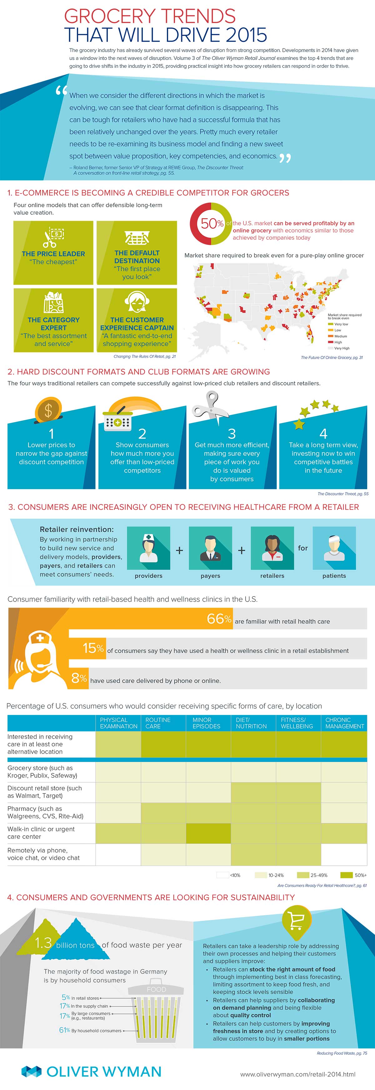 Developments in 2014 have given us a window into the next waves of disruption. Volume 3 of The Oliver Wyman Retail Journal examines the top 4 trends that are going to drive shifts in the industry in 2015, providing practical insight into how grocery retailers can respond in order to thrive.