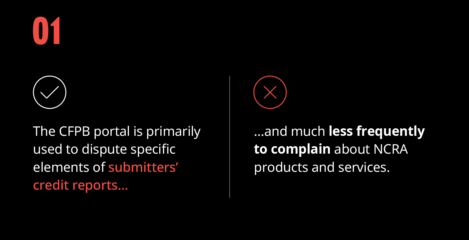 Oliver Wyman is analyzing credit reporting submissions (See note 1) made against the Nationwide Credit Reporting Agencies (NCRAs) (See note 2) via the Consumer Financial Protection Bureau (CFPB) online portal. The CFPB created the online portal to “help consumers connect with financial companies to understand issues, fix errors, and get direct responses about problems” (See note 3).