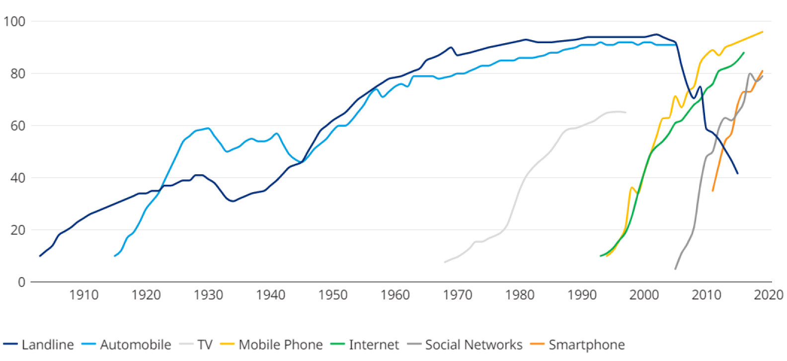 Exhibit 2: Technologies’ adoption rate since commercialization, %