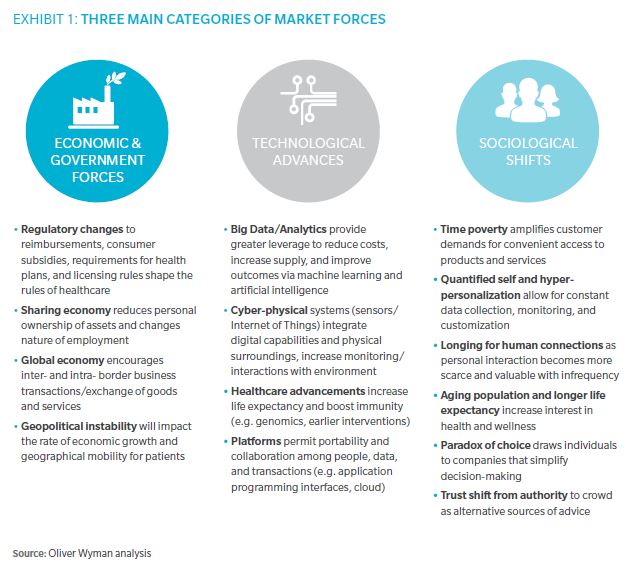 A new Oliver Wyman report suggests an innovative business model is soon going to disrupt healthcare’s status quo for good, especially as more incumbents and challengers begin – and continue – shaking up the market in areas of cost, regulation, and more. This shift –likely to be driven by customization – will occur even though the healthcare industry is still quite weak in certain foundational areas including affordability, value, and accelerated technological advance. And those resistant to change will need to step aside for those who embrace the coming healthcare revolution, as the time is now for healthcare’s long-awaited interruption. Here, in this report we outline just a few potential paths disruption will take in coming years.
