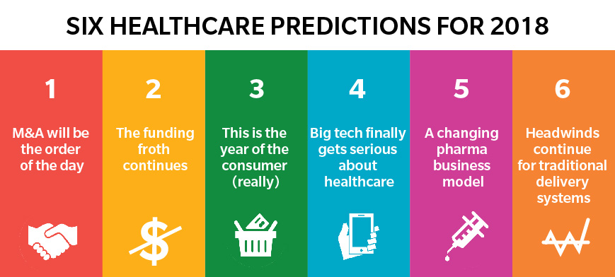 So why is 2018 the year for the big tech breakout in health? The convergence of retail, financing, and technology (such as CVS-Aetna and Amazon-Whole Foods) gives technology companies brand new consumer data and innovative touchpoints. Combine that with ready capital, plenty of digital health companies looking for an exit opportunity, and traditional players (particularly payers) in search of new types of partnerships, and it is clear we are approaching the inflection point.