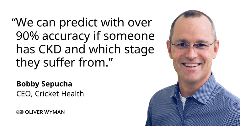 In this episode of the Oliver Wyman Health Podcast – recorded in honor of National Kidney Month – Bobby and Tom Robinson, a partner in Oliver Wyman’s Health and Life Sciences practice, discuss the current state of CKD and how Cricket Health’s strategies for detecting kidney disease earlier are helping keep patients rushing to the emergency room, not realizing what’s wrong with them.