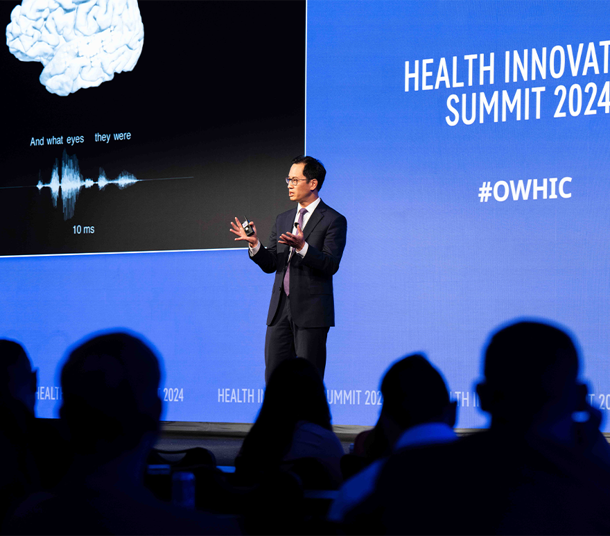 But perhaps the most fantastical use showcased at the Health Innovation Summit was something straight out of science fiction. Work pioneered by Edward Chang, M.D., Chair, Department of Neurological Surgery, UCSF, is giving a voice, literally, to paralyzed stroke patients. By thinking about the neurological pathways in the brain as coding, Chang and his team developed technology that uses sensors attached to the brain to capture the electronic impulses in the motor cortex, sends those via an HDMI cable to a computer, and uses language-prediction algorithms to translate them into words and sentences on a screen. The platform has evolved to a point where they can now synthesize an existing recording of the patient, generate an avatar, and give sound to those words.